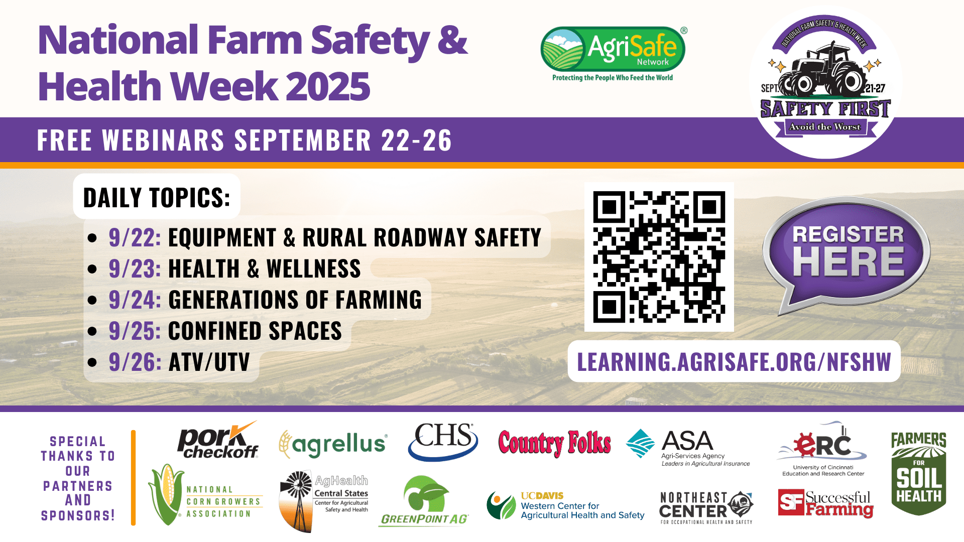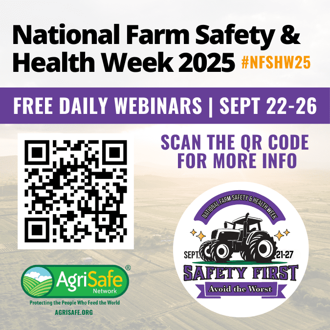 This is the official social media toolkit for National Farm Safety & Health Week 2025. Download and share these materials to promote the week’s webinars and resources.