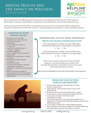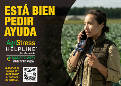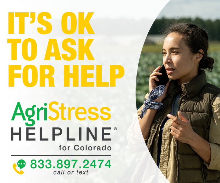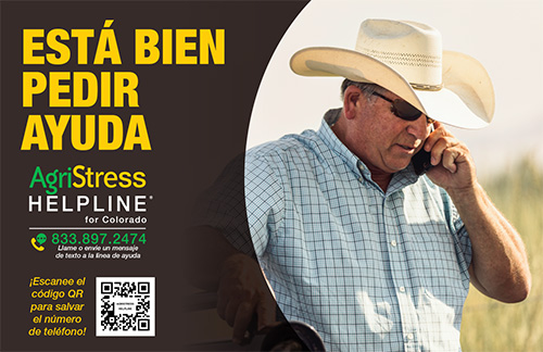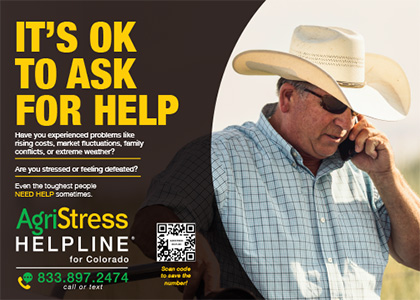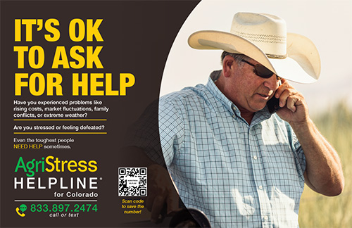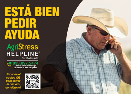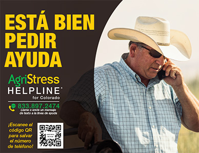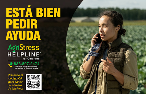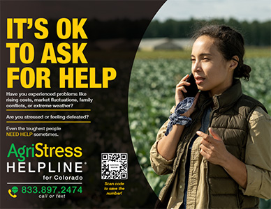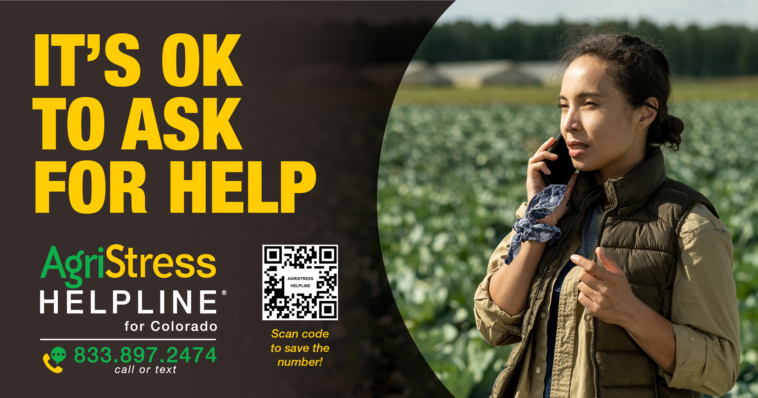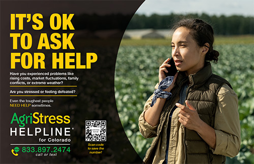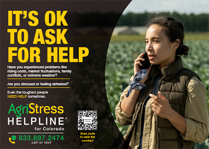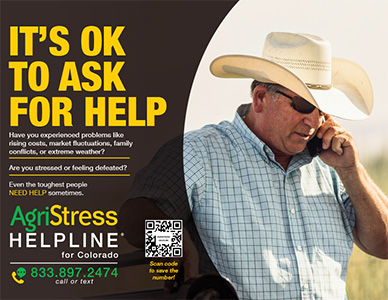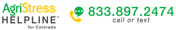 This is the official marketing toolkit for the AgriStress Helpline® for Colorado. You are welcome to download these materials and use them to promote the helpline however you see fit. Some examples include displaying a banner on your website, sharing an image to social media, placing a poster in your workplace, or handing out flyers at events.