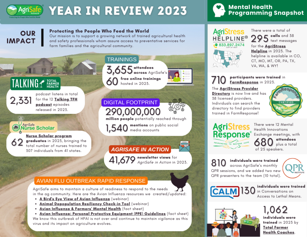 Every year AgriSafe publishes an annual report to document work and accomplishments. View our reports to see previous projects and how AgriSafe has grown!