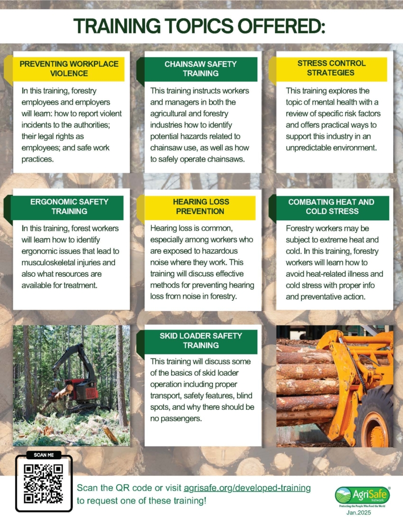 Last updated on June 21st, 2024 at 02:34 pmForesters and loggers work in the most hazardous industries with high job-related injury, illness, and fatality rates. This workforce faces unique environmental exposures, ergonomic challenges, and health disparities across all ages. The last comprehensive literature review in forestry health and safety for NIOSH was completed in 2012. Under a NIOSH IPA project, AgriSafe conducted a forestry health and safety literature review for publications from 2012 to 2022. The objectives of this review were: Uncover the health and safety issues currently facing the forestry and logging workforce. Identify any new trends or topics in the literature. Identify areas of training and health needs. Identify healthcare access issues impacting the forestry workforce. Final results of this project will be shared with the audience. Findings in this project will contribute to NIOSH’s priorities for forestry occupational health and safety and the literature. The literature review will inform and prioritize future forestry training needs through AgriSafe’s OSHA forestry training …